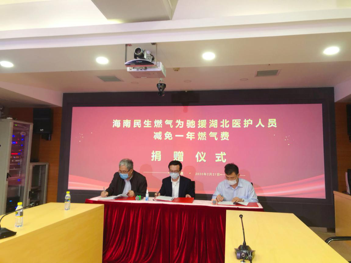 2月27日,“民生燃氣為馳援湖北醫(yī)護人員減免燃氣費捐贈儀式”在民生大廈舉行,海南省住房和城鄉(xiāng)建設(shè)廳廳長霍巨燃、海南省衛(wèi)生健康委員會副主任周國明及民生燃氣相關(guān)領(lǐng)導出席此次捐贈活動。根據(jù)協(xié)議,民生燃氣自2020年2月份起為其經(jīng)營區(qū)域內(nèi)的所有援鄂醫(yī)護人員減免一年(2020年2月1日-2021年1月31日)管道燃氣費,包括海口地區(qū)非管道燃氣用戶也可免費享受一年瓶裝液化氣服務。