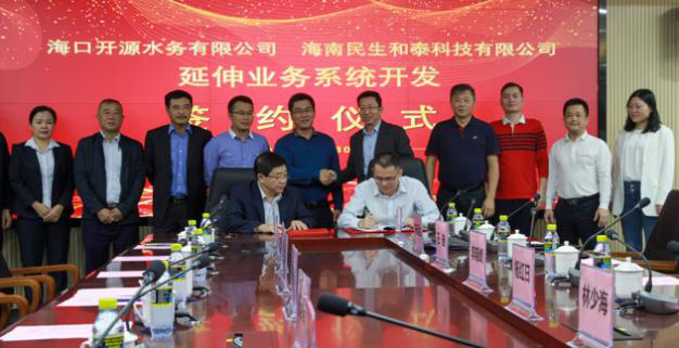 11月30日上午,海口開源水務有限公司與海南民生和泰科技有限公司線上延伸業(yè)務系統(tǒng)開發(fā)簽約儀式在海南民生燃氣多功能會議廳圓滿完成。海口市水務集團有限公司總經(jīng)理孫傳志、總工程師張浩,海口開源水務有限公司總經(jīng)理諶樂強、副總經(jīng)理林志珍、副總經(jīng)理陳傳平、黨總支副書記張運毅,海口威立雅水務有限公司總經(jīng)理田剛,以及海南民生管道燃氣有限公司總裁李曉峰、副總裁王奮、副總裁楊紅日,海南益正聯(lián)合建工集團有限公司總經(jīng)理林少海,海南民生和泰科技有限公司總經(jīng)理陳遠達、副總經(jīng)理鮑金霞等相關(guān)領(lǐng)導共同出席了此次簽約活動。