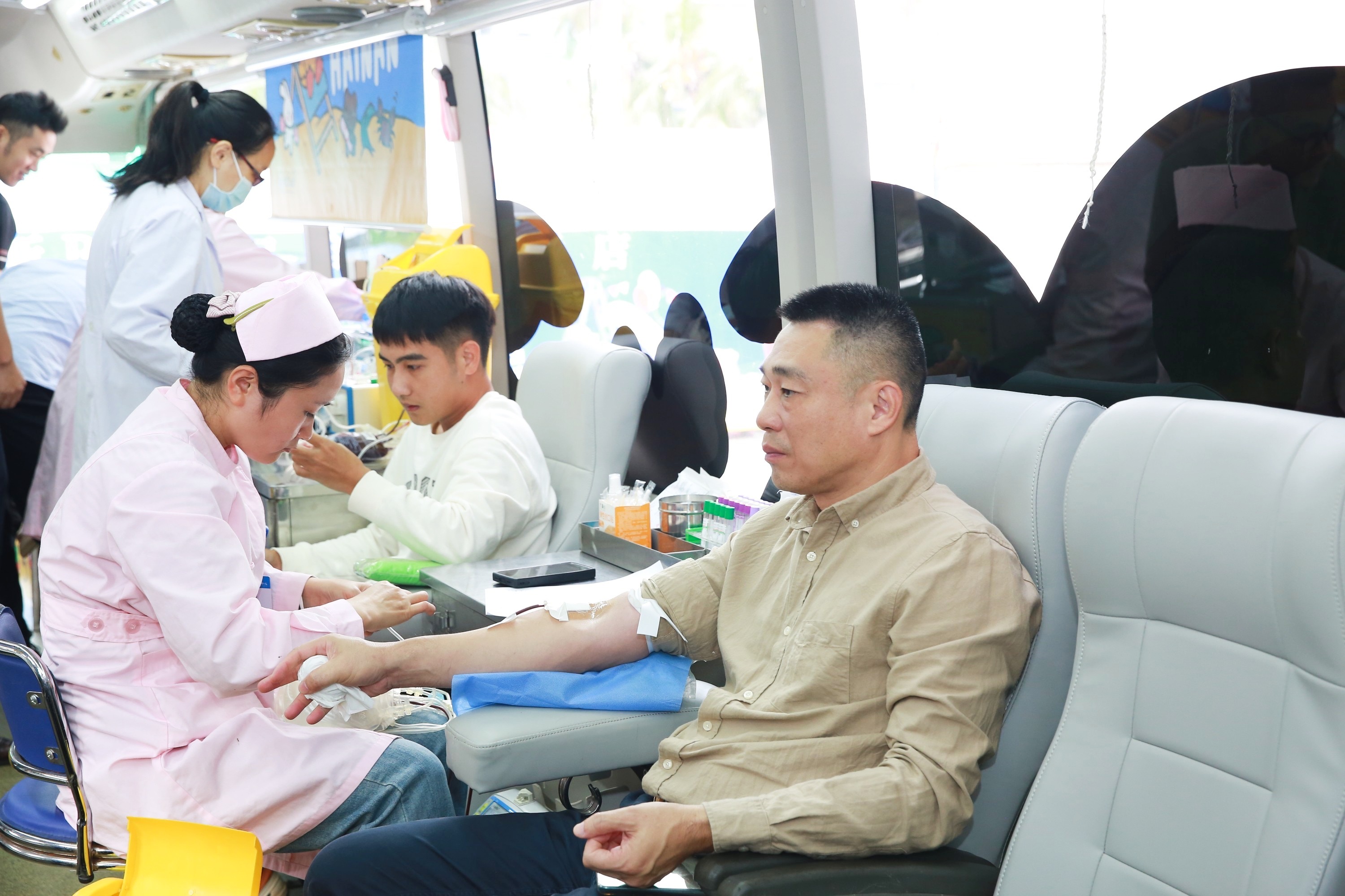 活動現場,參與獻血的員工們在海南省血液中心醫務人員的指導下,有序完成信息登記、血壓測量、血液化驗初篩等流程后進行獻血。獻血的隊伍中既有多年堅持無償獻血的“老將”,也有初次參與的“新兵”,從黨員到海南民生燃氣等分子公司的員工,大家以飽滿的熱情加入到這場“熱血”的隊伍中。