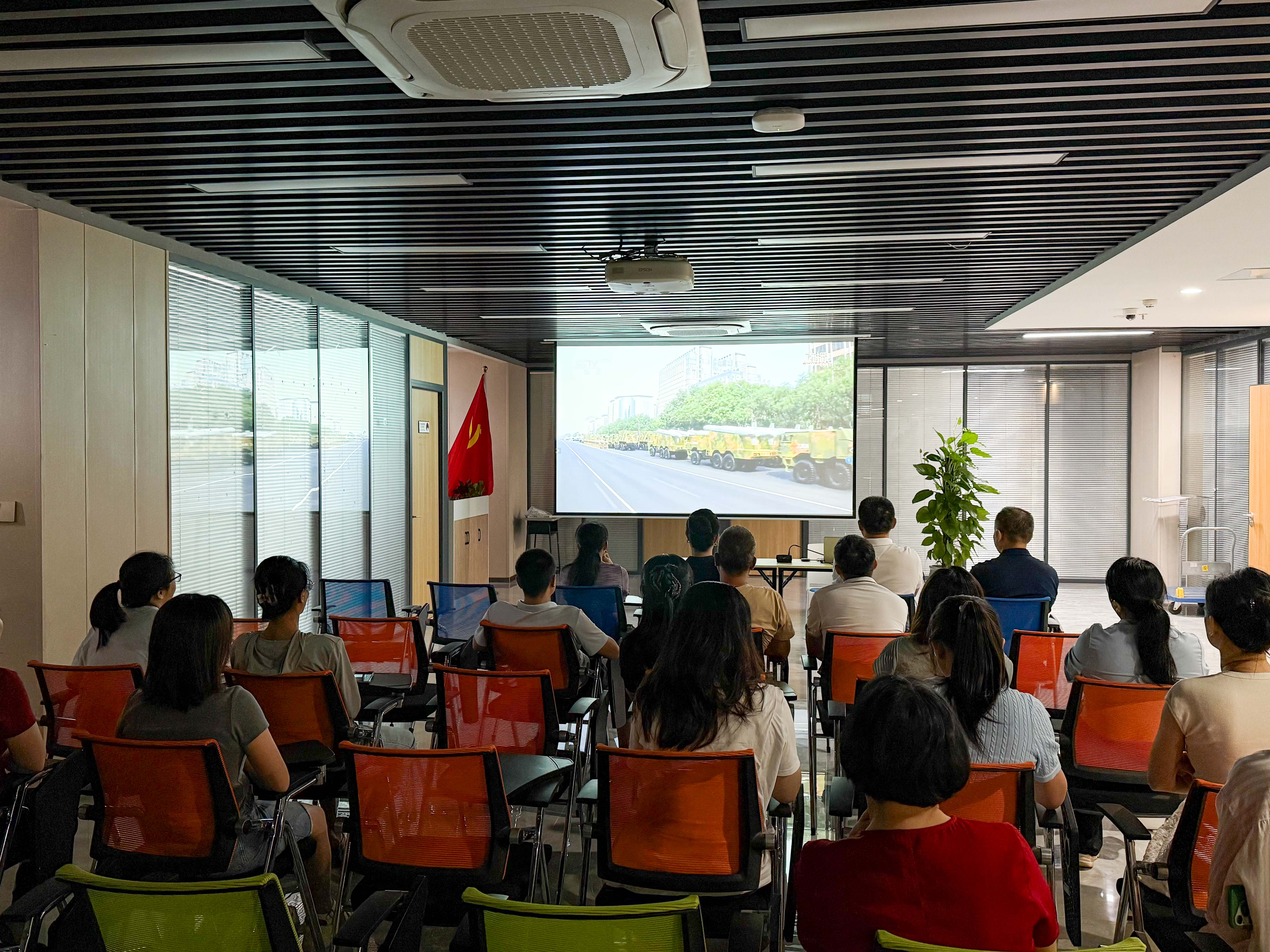 直播期間,大家認(rèn)真聆聽習(xí)近平總書記的重要講話,凝心觀看閱兵儀式的每一個精彩瞬間。空中護(hù)旗梯隊、徒步方隊、戰(zhàn)旗方隊、裝備方隊和空中梯隊等45個方(梯)隊依次通過天安門廣場,氣勢恢宏的受閱方陣讓每一位員工心潮澎湃、熱血沸騰。大家直觀感受到了新時代人民軍隊的昂揚風(fēng)貌與強大的國家實力,深深被這場國家盛典所震撼。